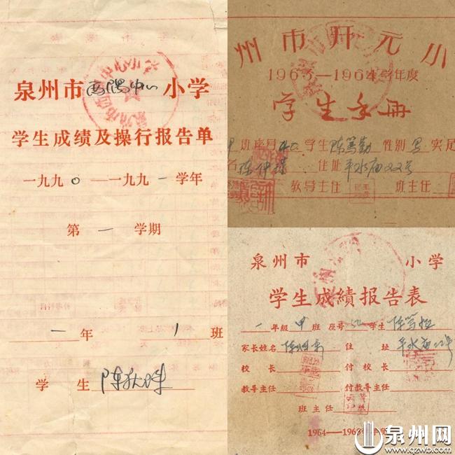 陈笃恒家保存的成绩报告表、学生手册(陈笃恒/供图)