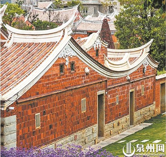 闽南古建筑专家杨先生告诉记者,闽南古大厝首先在建筑材料上就会有降温的作用:红瓦做顶,能隔热保温;红砖做墙不容易导热。“出砖入石”是一种就地取材的独特砌墙方式,用这种方法砌墙坚固防盗、冬暖夏凉。另外闽南建筑中的燕尾脊、双坡曲不仅美观,还能起到散水作用。