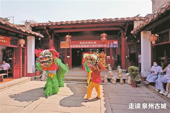 在开营仪式上,舞狮团带来了闽南青狮表演,泉州南音、木偶戏的非遗传承人也纷纷上台献艺。