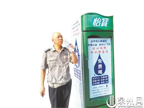 今年夏天,泉州市交警支队和鲤城、丰泽两个大队也积极参与开展“爱心冰柜免费奉水 致敬高温下劳动者”活动,分别在钟楼岗、文化宫岗、城雕环岛岗、浮桥岗、明发环岛岗、泉秀岗、丰泽岗、东湖岗等8个路口设置了“爱心奉茶点”。