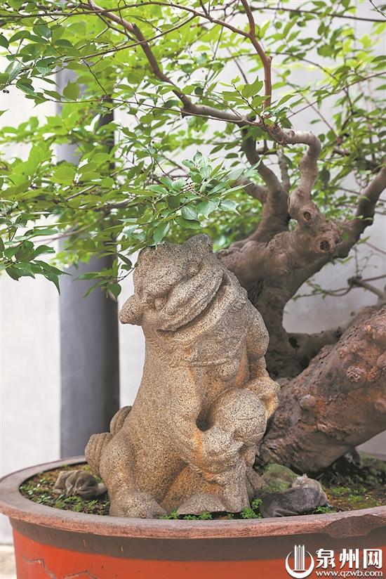 矗立在园区门口的“元狮”是“镇园之宝”。据石狮园林的收藏者林克珊介绍:“这尊元代狮子,由质朴的黑青石雕刻而成,从满头的‘卷发’可以判断它的出身定是不凡。在古代,石狮子头上的旋螺纹越多,说明曾经拥有它的人官阶越高。这头元狮造型独特,品相相当不错,经历了数百余年风雨的洗礼,仍旧气势非凡,威而不怒的神态,让人心生敬畏。”