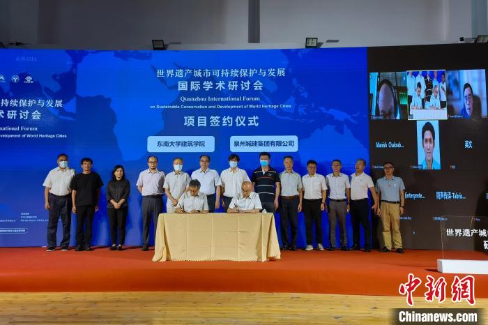 7月19日,世界遗产城市可持续保护与发展国际学术研讨会在泉州举行。图为项目签约仪式。 孙虹 摄