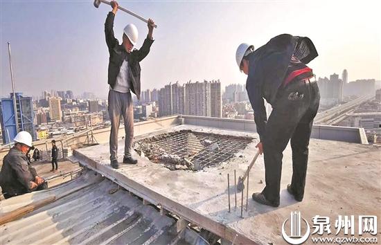 拆除顶楼违法建设的水泥建筑物