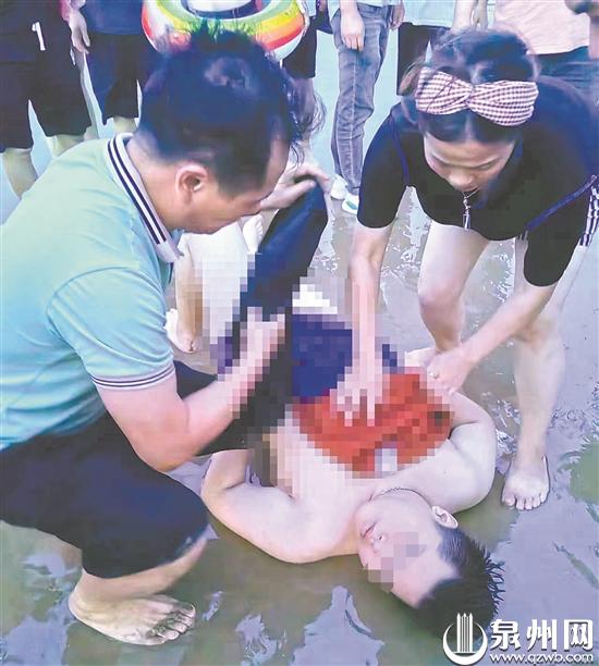 泉州网7月20日讯(记者 吴志明 通讯员 王招娣 文/图)7月17日,在台商投资区月亮湾海边,一名男孩因溺水心跳呼吸停止。危急时刻,刚好到此游玩的安溪县中医院急诊科主任张银清上演与死神抢人的高能瞬间:迅速判断病情,开展心肺复苏,成功救下溺水男孩。