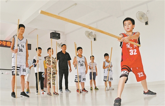 在前黄镇凤阳村新时代文明实践站,棍术、书法、南音等暑期公益课堂,为孩子带来丰富的暑期生活体验。(林弘梫 摄)