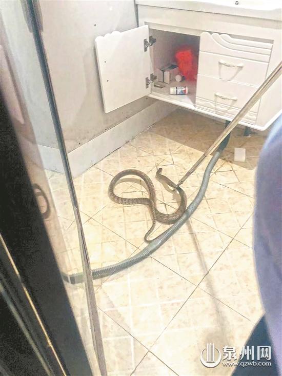 泉州网7月20日讯 (记者陈玲红 通讯员沈志滨 文/图)“警察同志,你们赶快来,我家卫生间里藏着一条蛇……”,7月18日中午1点多,居住在南安市梅山镇的王某向梅山派出所报警求助。