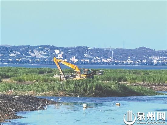 水上挖掘机在海滩上行动自如,一片片互花米草被铲除深埋……6月底以来,一场没有硝烟的战斗在泉州湾南岸石狮段打响。石狮市采购第三方服务,启动为期4个月的泉州湾(石狮段)互花米草清理工程。早在2013年,石狮市就开展了互花米草的清理项目。但2017年以来,由于泉州湾上游晋江和洛阳江河口区存在较多的互花米草未整治铲除,导致下游石狮海域复发互花米草,并持续蔓延。截至今年5月,泉州湾(石狮段)互花米草约有1380.2亩待清理。