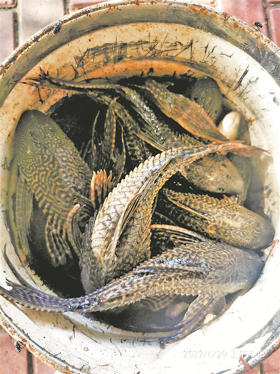 东湖公园捕捞出不少清道夫鱼(陈明华 摄)