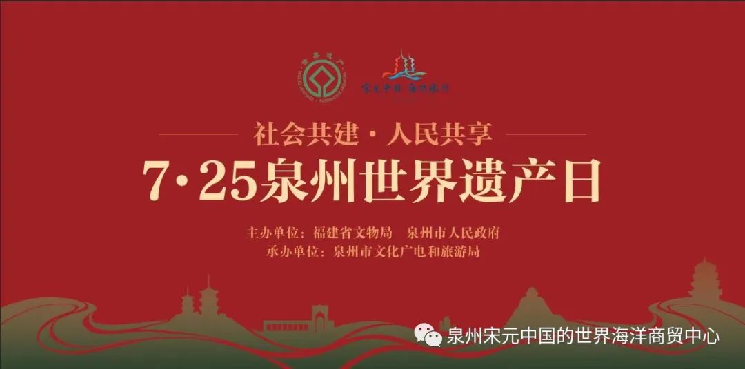 据悉,7月25日是泉州申遗成功一周年,也是首个“泉州世界遗产日”。本次活动以“社会共建,人民共享”为主题,由福建省文物局、泉州市人民政府主办,泉州市文化广电和旅游局承办。线下主会场设在府文庙广场,分会场包括市直单位和9个遗产地。