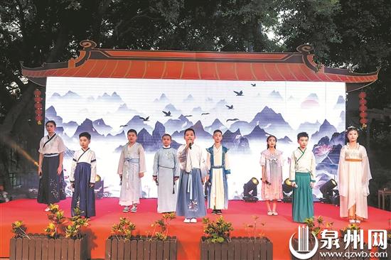 歌舞、诗朗诵、乐队演唱以及特色美食展销,这里的活动真热闹。在沉浸式互动体验环节,演员们身穿各国服饰,在蔡襄祠门口表演《市井十洲人》,为市民朋友们再现宋元时期泉州海洋商贸繁荣景象。在演员和城市IP“洛水仙珊”人偶带领下,市民朋友们或行走在桥南古街,观看南音现场表演,品尝各色美食,或走上洛阳桥头,观看“音为爱·听国潮”洛阳桥国潮音乐会,“沉浸式”体验洛江之美。