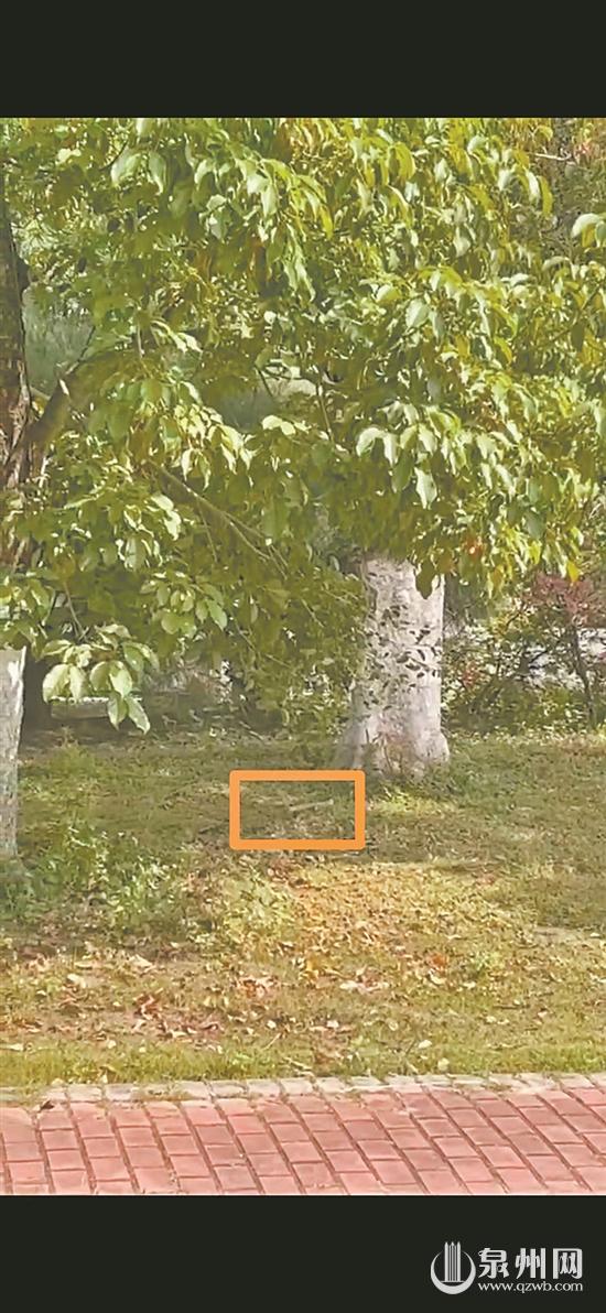泉州网7月27日讯(记者 林福龙)“正在公园里面跑步,突然看到一条蛇,吓了一大跳!”昨日,家住市区东海的市民袁女士来电报料称,前几天她到市区滨海公园跑步,竟然在公园草坪遇上一条蛇。她希望,有关管理部门采取妥善措施,确保到公园休闲市民的安全。