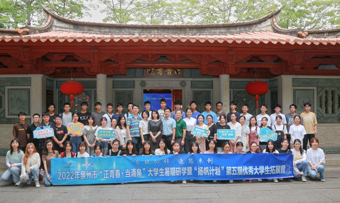 7月27日,泉州团市委联合市教育局、市人社局、市文旅局开展“正青春·当涌泉”大学生暑假研学暨“扬帆计划”第五届优秀大学生拓展营活动,通过参观考察、互动体验、交流分享等方式,向留泉、返泉、来泉的高校大学生深入解读“涌泉”行动20条政策并宣传推介泉州城市环境。各相关部门代表及来自清华大学、中国人民大学、中国海洋大学等高校的60余名优秀大学生参与本次活动。