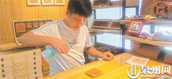 活动授课人是红砖拓印技艺制作者郑培南。他将“世遗”泉州文化、古老的闽南红砖文化与传统的拓印技艺相结合,碰撞出不一样的火花,即在红砖上雕刻泉州22处世界遗产点,然后用古法拓印的技艺,将“世遗”文化浓缩在拓片上,呈现黑白水墨画的艺术效果,展现世遗文化的魅力,让大家在快乐的手工创作中、在时光印记中感悟家乡——泉州之美 。