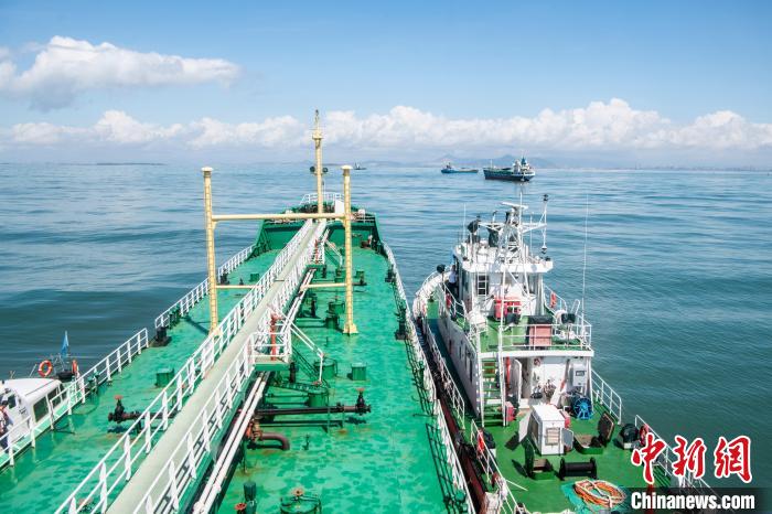 8月5日,“海巡06”轮在泉州海域巡查金门供水管道安全。 福建海事供图