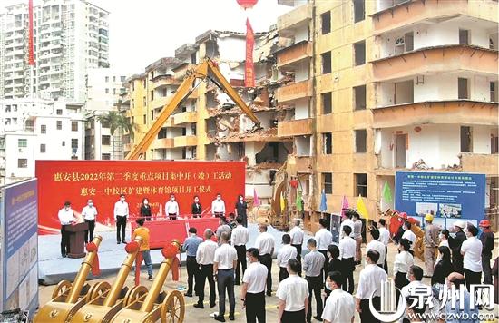 在惠安一中校区扩建项目现场,工作专班昼夜入户、深入动员,耐心细致做好工作,仅用15天就完成征迁户签约、房屋腾空“两个100%”,创造了征迁新速度……据了解,针对教育设施不配套问题,惠安县成立教育发展促进会,筹集10亿元教育慈善基金,投入教育领域,切实解决好群众关注的教育民生实事。