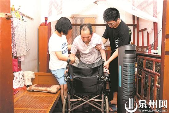 给爷爷翻身、搀扶坐起、扶上轮椅、扶到床上……这些动作都需要兄妹合力才能完成。奶奶说,幸好有两个孩子帮忙照顾,不然都不知道怎么办。
