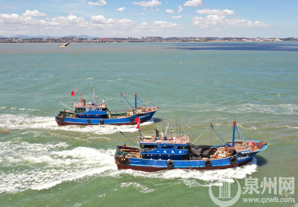 泉州网8月16日讯 (记者 张九强 陈起拓)8月16日,在福建省泉州市石狮国家中心渔港码头,渔民们驾驶着渔船有序出海。历经三个半月的伏季休渔后,福建部分海域正式开渔。