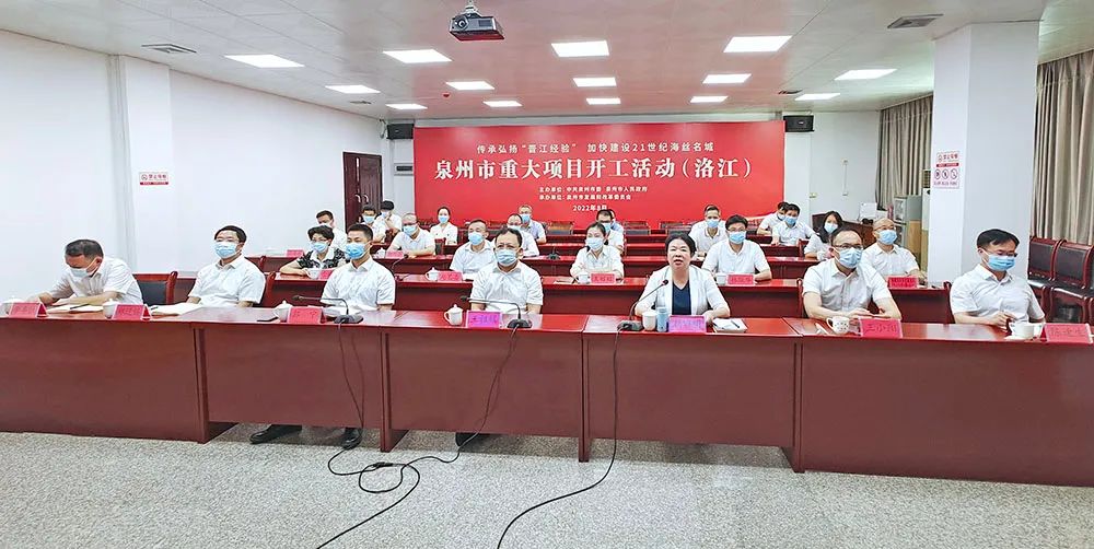 8月17日,泉州市2022年重大项目视频连线集中开工活动举行,洛江区城乡供水一体化项目作为项目代表参加开工活动。市政协副主席王祖耀,区委书记颜丽明,区政府区长郭宁,市科技局局长王小阳、市林业局局长郑进锡,区人大常委会主任陈逢生,区政协主席李奉恒,区委常委、常务副区长王昭昭,区政府副区长林联华,区人大常委会副主任赵艺忠,区政协副主席金玲珊在洛江分会场参加。