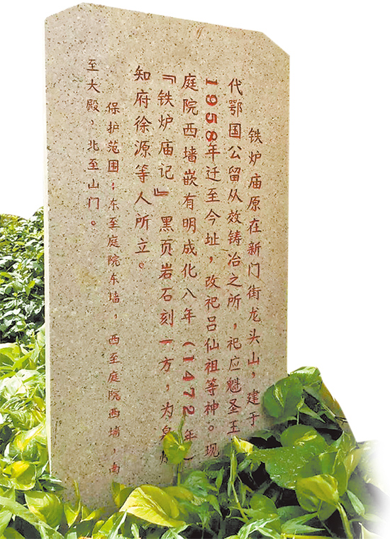 其实,除了遗产点外,泉州市区还有几处与古时冶铁有关的地方。一是象峰巷的铁炉庙,庙廊西壁嵌有明成化八年(1472年),泉州知府徐源、同知秦琨立的《铁炉庙记》一方。《泉州府志》记载,铁炉庙原址位于龙头山片区,是留从效在泉州冶铁的遗址。1958年,铁炉庙旧址建设工厂,遂迁至象峰巷。