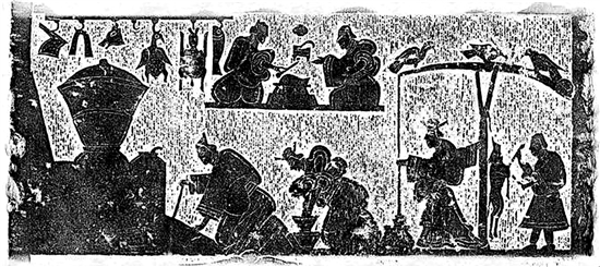 分工明确,庖厨画像石拓片(山东博物馆藏)