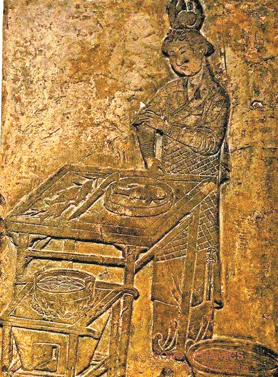 河南偃师出土的北宋“斫鲙画像砖”上我们可以看到,一个厨娘正准备破鱼,案板上放着一把刀。