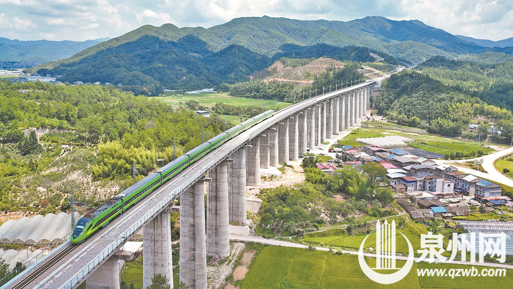 8月19日8时28分,随着55102次综合应急演练列车从泉州站开出,标志着兴泉铁路清流至泉州段动态验收工作进入收尾阶段,兴泉铁路距离全线通车又近了一步。图为演练列车驶过兴泉铁路元山车站双线特大桥。(张海根 赖劲松 摄影报道)