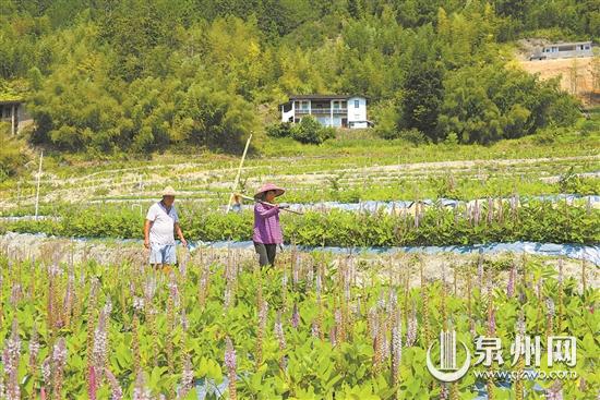龙塔村充分利用海拔低、温热条件好的地理优势,联合德化凌氏中草药种植农场规划种植姜黄、石参、白芨、佛手等中草药200亩,建设加工厂房1栋。基地于2021年底开建,目前已完成姜黄、石参、白芨种植150亩,按照“基地(农户)种植+保价收购+药材加工+药膳研发”的运营模式,将村庄产业发展与龙塔畲族村畲医畲药传统文化有机结合,推动畲药产业成为共富“良药”。基地建成后,可为周边村民提供几十个固定就业岗位,同时可实现村财每年增收9万元。