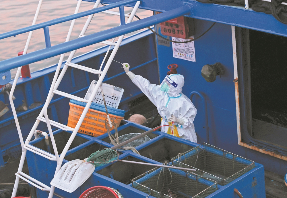 泉州网8月24日讯(记者 王柏峰 文/图)8月22日傍晚,在泉州蟳埔渔人码头,满载渔获物的渔船迎着夕阳返航。渔民在定点上岸处接受检查,船上人员信息逐一核对,并进行核酸采样。核酸采集人员上船细致地用棉签从渔获物身上提取样本,确保开捕后“第一鲜”的安全入市。当天晚上,工人们忙着卸载海产品,通过滑轨运送,将船上一筐筐海鲜分拣上岸,运往泉州各大水产市场,充实市民的“菜篮子”。