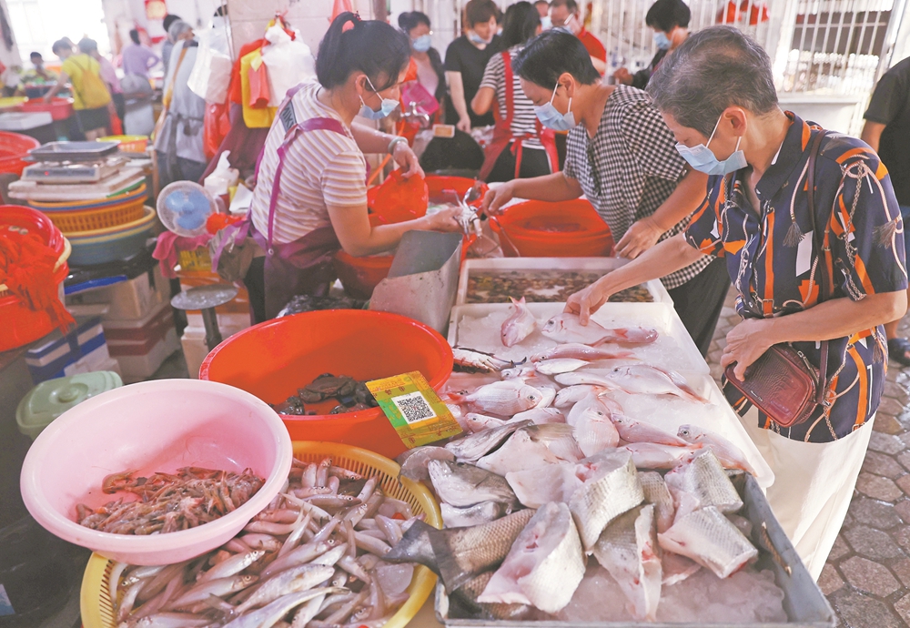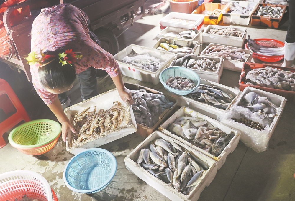 “开渔后菜市场的海产品明显丰富了,价格也比较亲民,我想多买些海鲜回去,和家人一起一饱口福。”一大早就来“抢鲜”的市民张女士高兴地说。昨日上午,记者在市区东菜市场看到,生鲜海货已经大批上市,海鲜摊档摆满了鲳鱼、黄翅鱼、九节虾、大螃蟹等海产品,连空气里都弥漫着“鲜味”,现场叫卖声、讨价还价声此起彼伏,热闹非凡。
