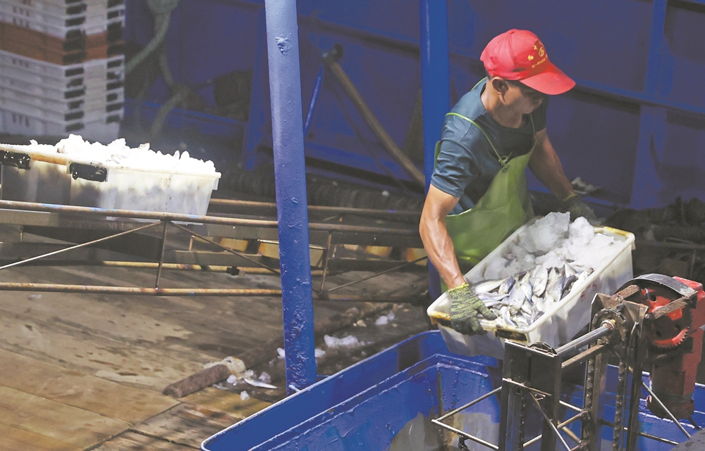 泉州蟳埔渔人码头,满载渔获物的渔船迎着夕阳返航。