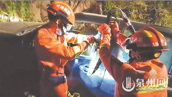 8月22日21时50分许,德化县浔中消防救援站接到报警称,位于泉州市德化县浔中镇浔北东路发生一起轿车坠沟壑交通事故,有一名司机被困。消防救援人员到达现场后立即展开警戒,经勘查发现,轿车掉入沟壑中,驾驶员被困在驾驶室位置,驾驶室车门变形无法打开。消防救援人员为被困者做好防护后,利用液压钳对车门进行破拆,成功将被困人员救出,由120送往医院接受进一步治疗。据司机描述,当时因夜间视线不足,转弯时车速较快,才导致事故发生。
