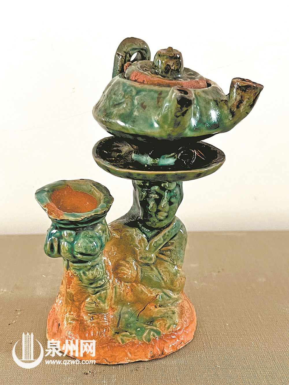 泉州网8月26日讯 (记者 郑运钟)走进位于世界遗产点磁灶窑址(金交椅山窑址)的泉州古代外销陶瓷博物馆,映入眼帘便是陈列于展柜中的绿釉军持、青釉五盅盘、酱釉印纹盖罐、擂钵、陶扑满、青釉铁绘花卉纹盆……这些出土自墓葬、古窑址、古沉船中的磁灶窑陶瓷器物,造型古拙、釉色丰富:有的展现出拓荒年代的质朴风格,有的显出瑰丽的盛唐气象,也有的神似宋元的世俗生活意致,甚至还有的透着异域风情……不同时代的精神火花在此凝冻、积淀下来,流传和感染着人们的思想、情感和观念,常使人一唱三叹,流连不已。