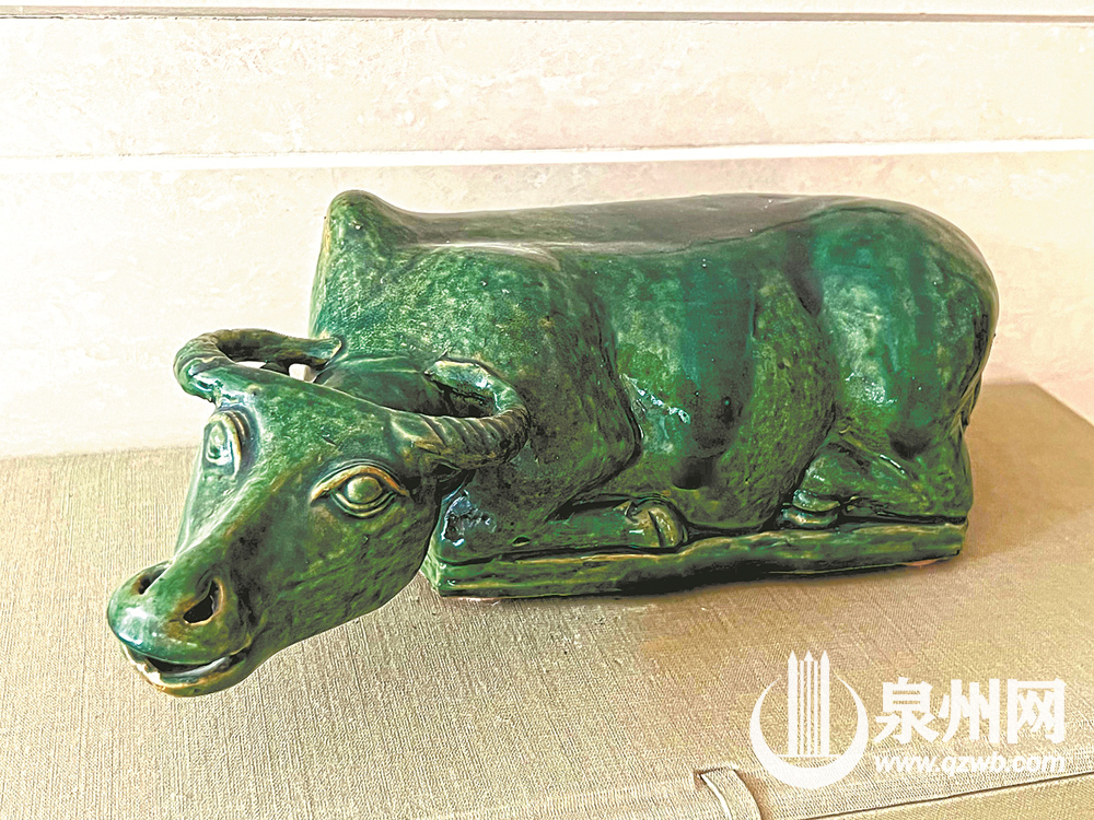 绿釉牛雕塑传神