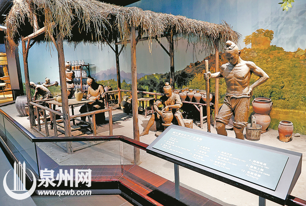 金交椅山窑址展示馆内展示的磁灶窑生产工艺流程(资料照片)