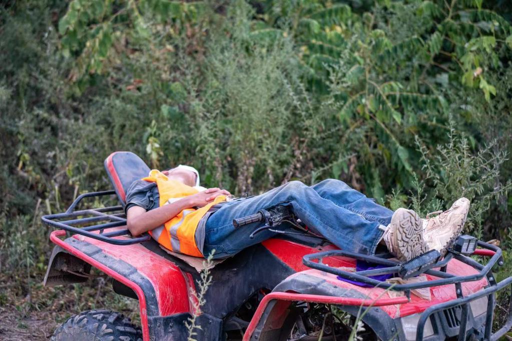 从太阳升起到落下,这些志愿者们衣服早已被汗水浸湿。累了,就靠在摩托车扶手上歇一会儿。摔倒了,众人马上过来扶起来,又继续往前冲。