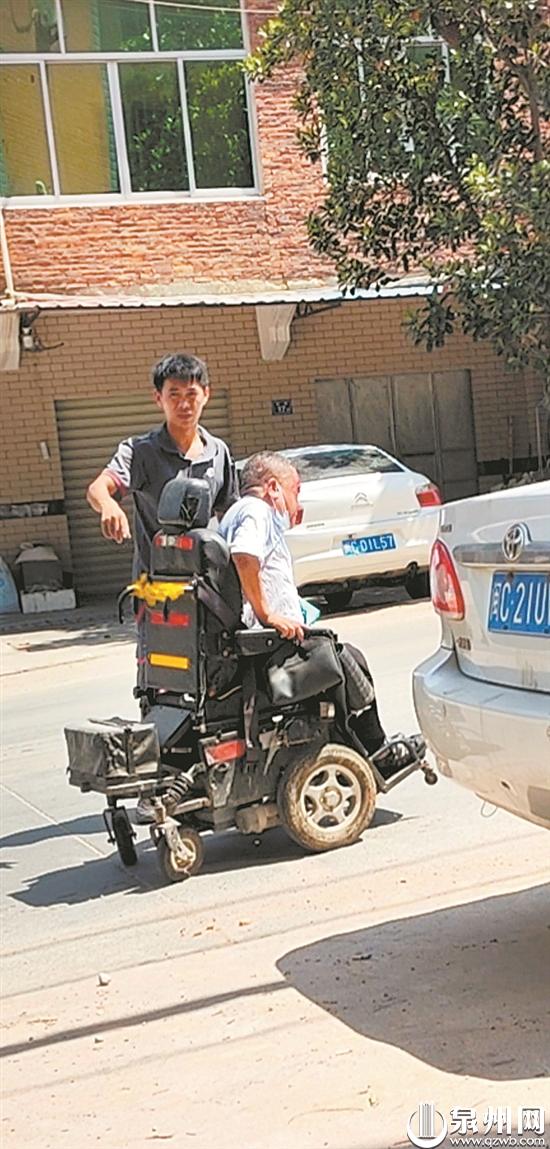 原来,老人乘坐的电动轮椅突然出现故障,无法前进,他身体重心不稳就摔倒在地。待老人的家人赶来后,黄劲松、傅子聪两人才又继续投入到工作中。