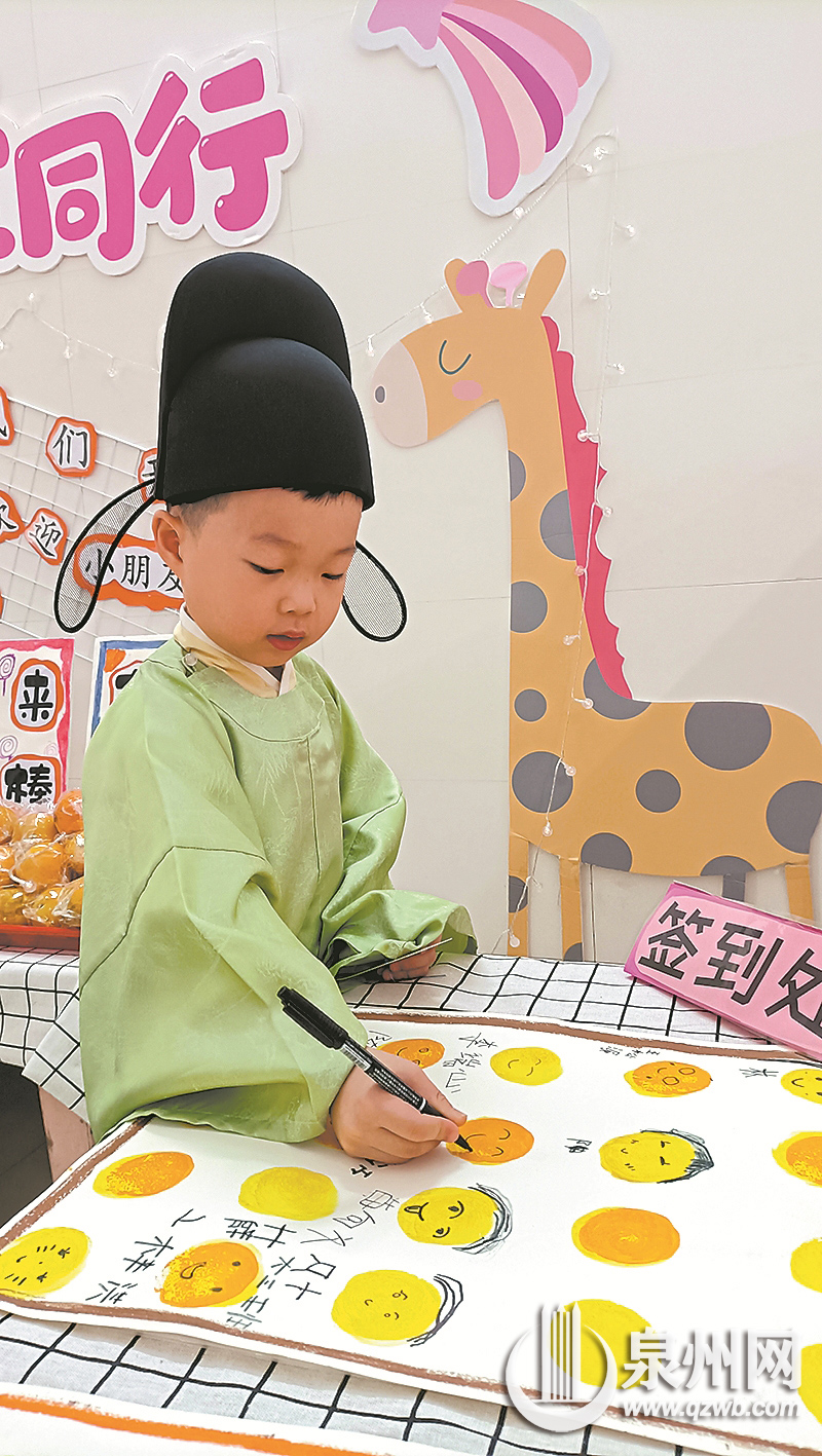 南安市第一幼儿园以“国风古韵,稚子归学”为主题开展国风开学仪式。朱砂启智、击鼓鸣志、选取古风书签、班级国风打卡,孩子们身着汉服在国韵满满的仪式中感知、传承中国传统文化。(魏晓芳 郑玲珑 摄)