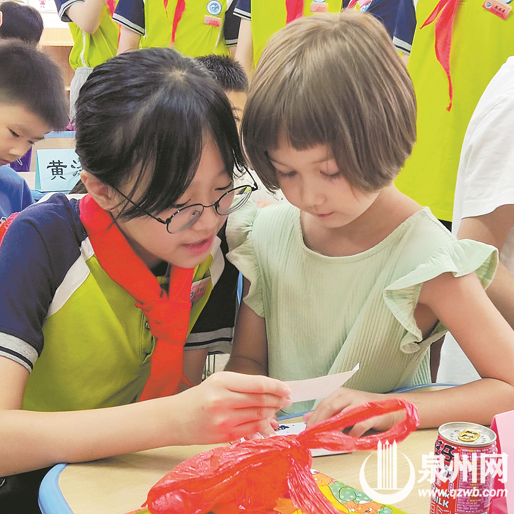 泉州实验中学丰泽附小组织高年级学生为一年级新生赠送祝福卡,祝贺他们开启新的篇章,传递老师和学长的祝福与关爱。 (李晓婷 摄)