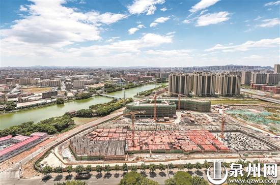 日前,位于晋江市池店镇的省级重点项目——池店文教园项目(晋江一中池店分校)教学楼封顶。池店文教园项目总投资4.5亿元,占地面积82亩,总建筑面积7.3万平方米。该项目是晋江推进民生工程建设的一项重大举措,完成后将进一步完善晋江教育公共服务配套设施。(林劲峰 许雅玲 摄)