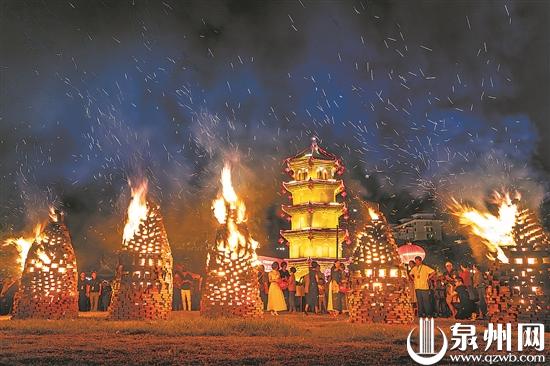 安海保留着中秋烧塔仔的传统民俗 (泉州晚报资料图片)