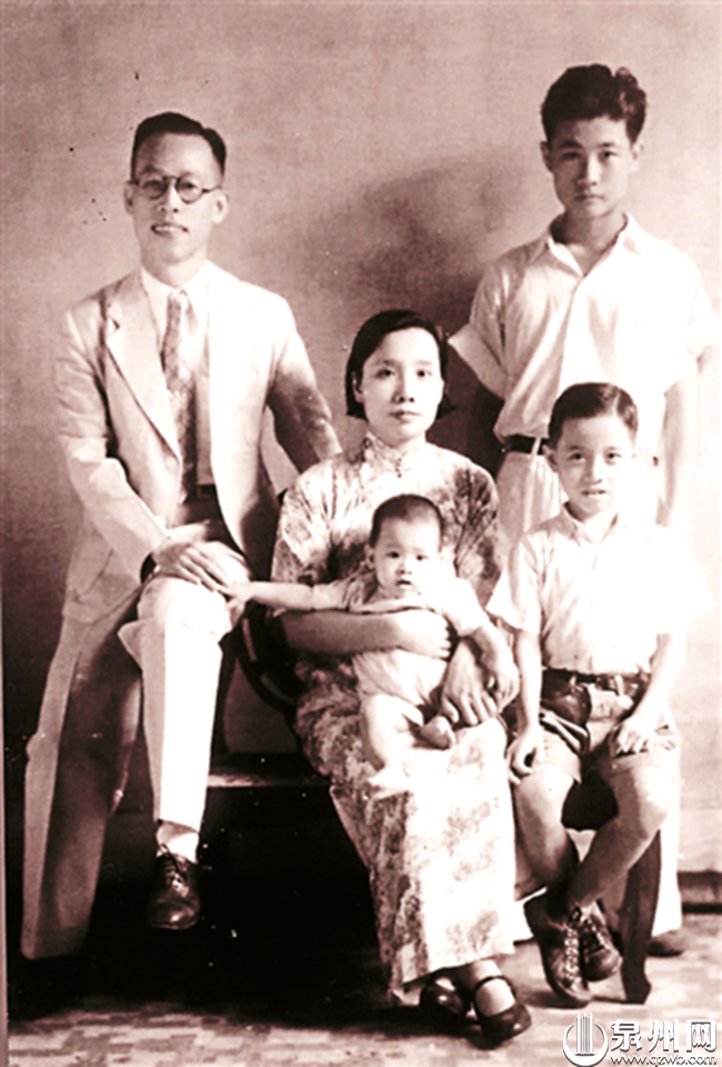 1937年,王雨亭(左一)决定送长子王唯真(后右)回国抗日前,与夫人和孩子们在菲律宾马尼拉合影。(鲤城区侨联/供图)