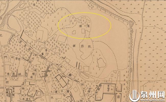 1939年泉州地图中的顶埔,这里位于古城东隅胜果铺执节境。