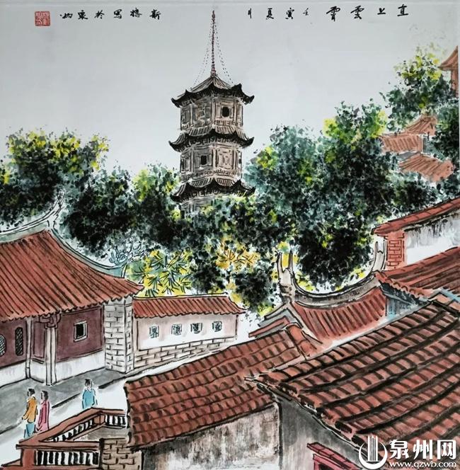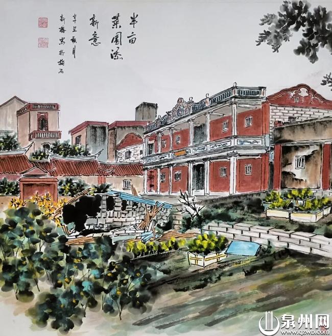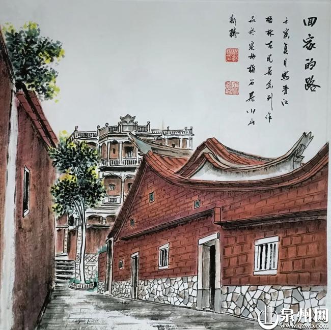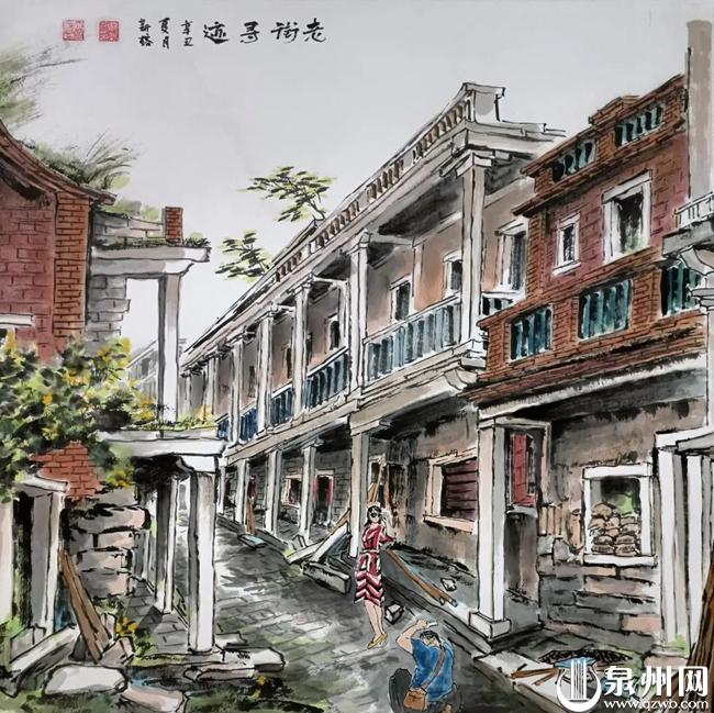 泉州网9月9日讯 (记者王了)中秋假期在图书馆看画展了。 “喜迎二十大——闽台福缘 泉州印迹”杨新榕闽南风情美术作品展9日在丰泽区图书馆开展。