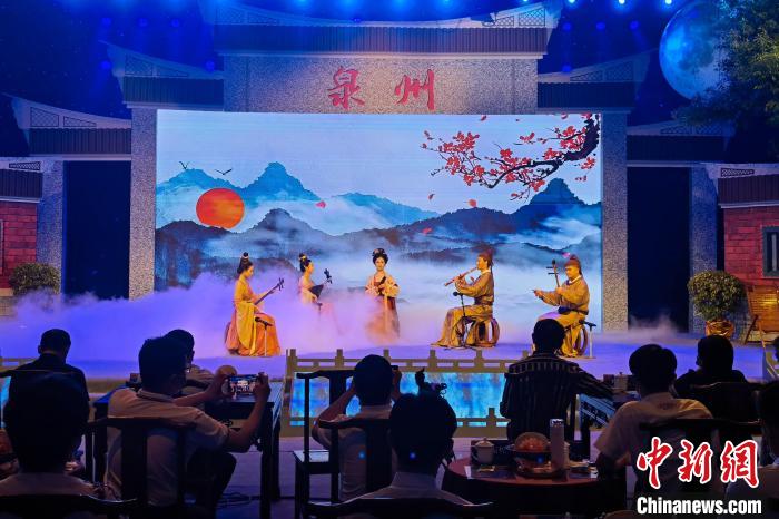 在泉州主会场,二十四节令鼓、提线木偶书法表演《花好月圆》、南音清唱《望明月》、高甲戏《管甫送》等非遗节目精彩上演,海内外乡亲“云”品茶、“云”看戏、“云”听曲,其乐融融。