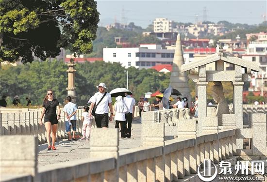 中秋假期前两天,世界遗产点洛阳桥也迎来了许多游客。昨日上午,记者在现场看到不少游客前来参观洛阳桥。