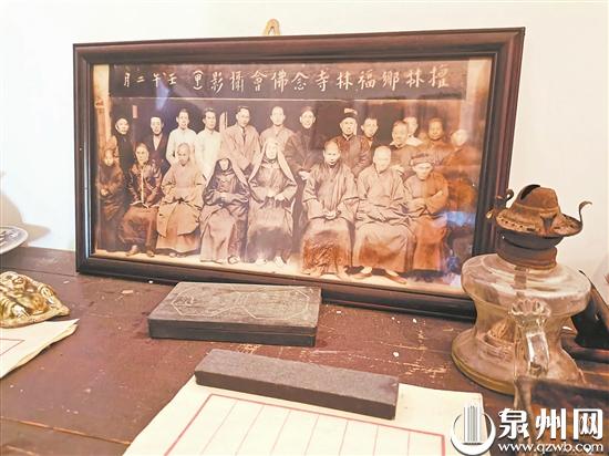 而今,金相院的那伽阁正在筹建弘一大师纪念馆,弘一大师驻锡时所用桌、椅、床、柜等物,以及一些珍贵的旧照,都会在此得到展示。1942年,檀林乡福林寺念佛会成立。弘一大师亲临其会,与金相院的转博大师、瑞春法师,草庵寺的广空法师,福林寺的传贯法师等,共同留下两张珍贵的合影。这两张照片亦存于那伽阁内。