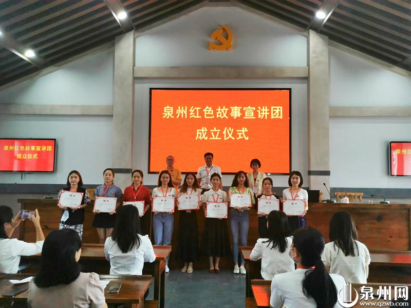 成立仪式上,宣读了泉州红色故事宣讲团首批成员名单,为宣讲团成员颁发聘书、徽章及工作证件,并举行授旗仪式。