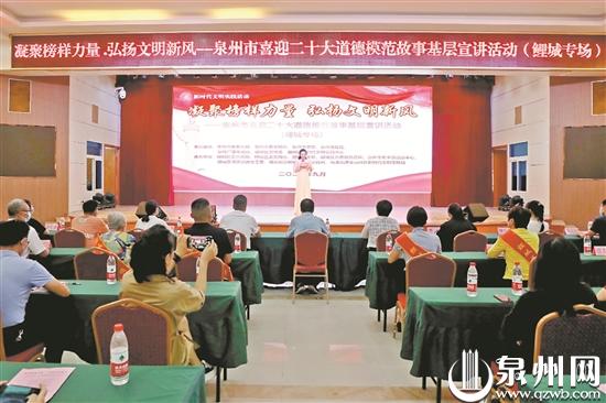 泉州网9月20日讯 (记者廖培煌 通讯员李淑媚 施远圻 黄莉莉 文/图)今年9月20日是全国第20个“公民道德宣传日”,一段时间来,泉州市各地各部门广泛开展形式多样的道德实践主题活动,进一步推动新时代公民道德建设工作走深走实。近日,“凝聚榜样力量·弘扬文明新风——泉州市喜迎二十大道德模范故事基层宣讲活动”鲤城专场举行。