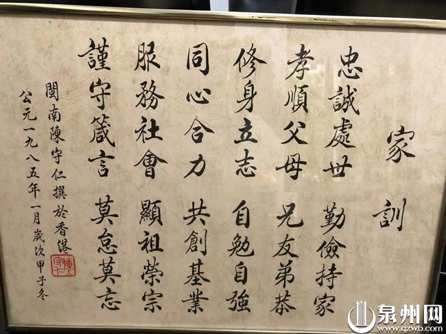 “忠诚处世,勤俭持家;孝敬父母,兄友弟恭;修身立志,自勉自强;同心合力,共创基业;服务社会,显祖荣宗;谨守箴言,莫怠莫忘。”无论在什么地方,这则家训始终伴随着陈守仁家族,这或许就是陈老先生能够凭借泉州人爱拼敢赢的那股劲,在海外站稳脚跟,再漂洋过海回乡反哺,致力于祖国与家乡教育慈善事业发展的精神纽带。