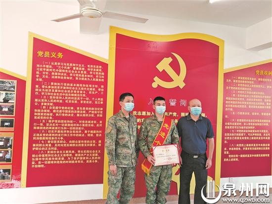 泉州网9月24日讯 (记者廖培煌 实习生洪冠睿)“保护人民群众生命安全是军人的职责。若再遇到危急时刻,我还会第一时间挺身而出!”昨日上午,接过丰泽见义勇为协会负责人和丰泽公安分局民警递上来的证书,梁长达这样说。当天,丰泽区见义勇为协会和丰泽公安分局一行人前往漳州,为勇救两名落水者的士兵梁长达颁发“见义勇为先进个人”证书和奖金,表彰其舍身救人的义举。